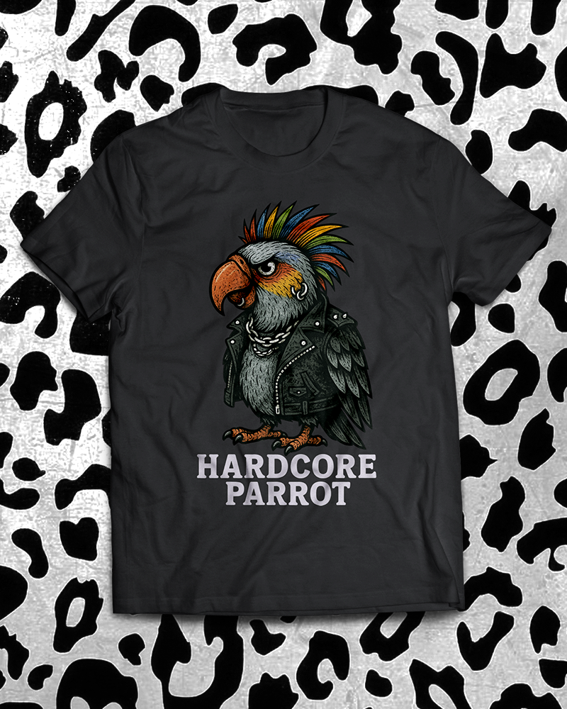 Scream. Squawk. Shred. Meet the Hardcore Parrot T-shirt.